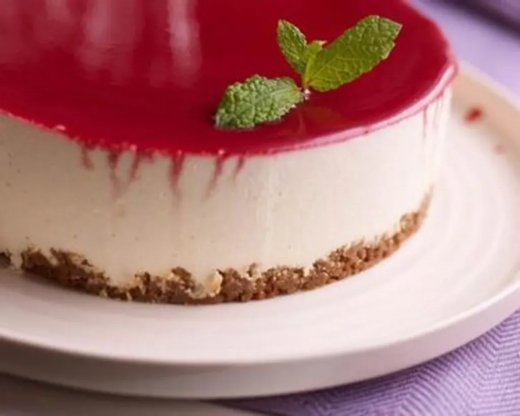 Huisgemaakte Bavarois met aardbeiensaus en slagroom