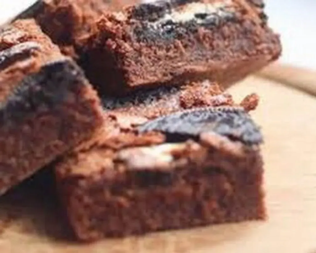 Huisgemaakte Brownie met caramelsaus en slagroom