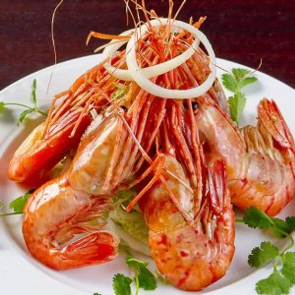 Gewokte gamba’s in knoflookolie, geserveerd met: