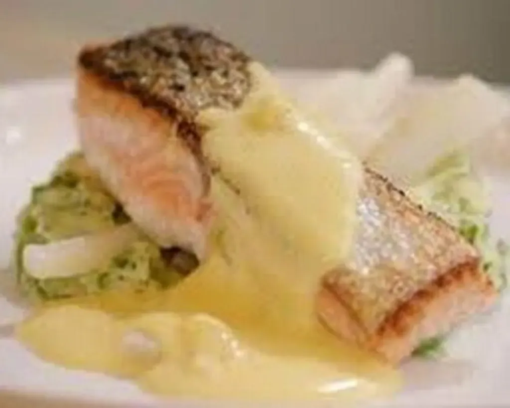 Heerlijke zachte zalmfilet met bearnaisesaus geserveerd met: